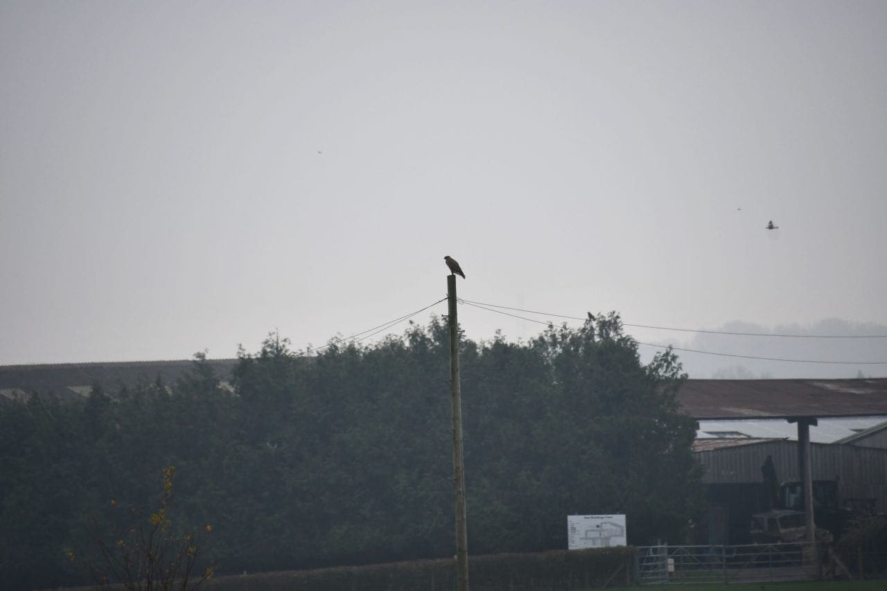 One of the telegraph poles close to New Buildings Farm with a perching buzzard.