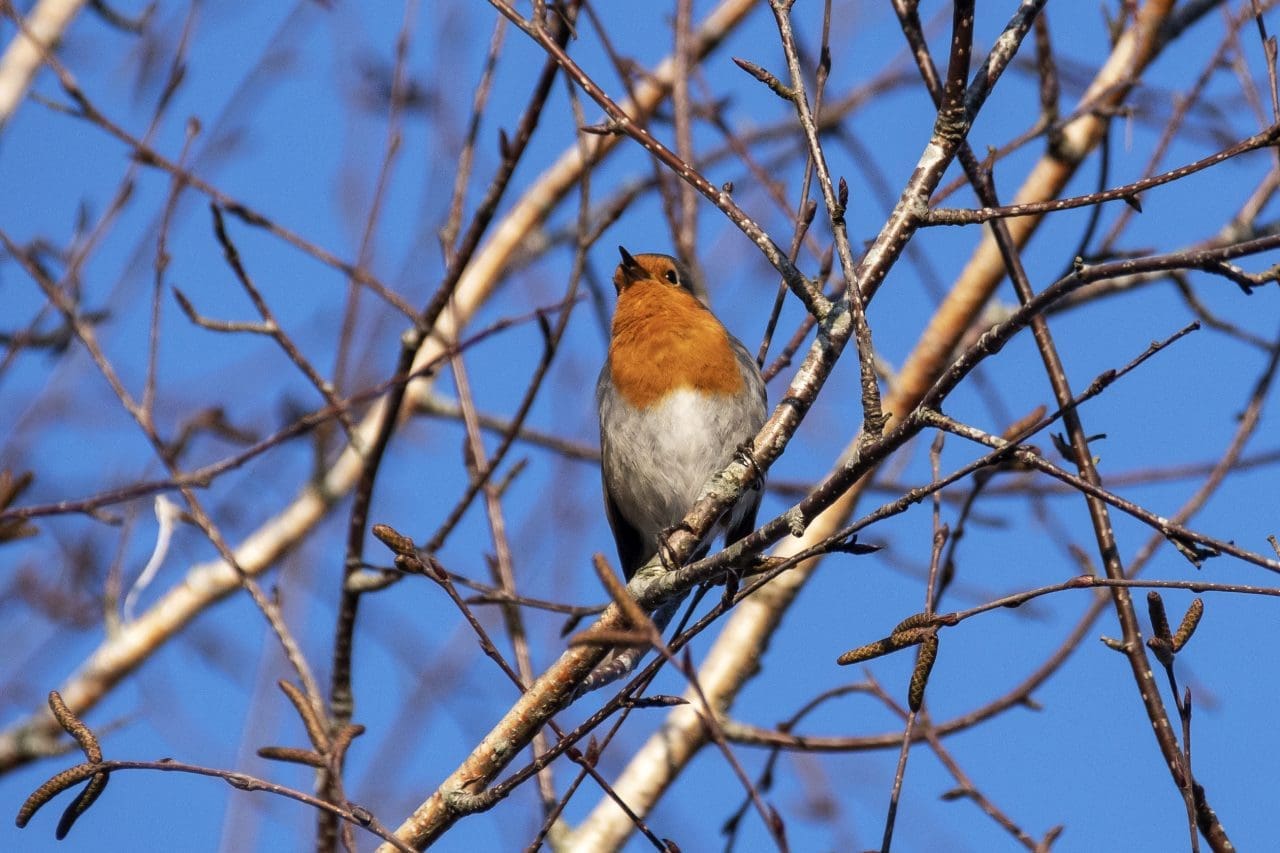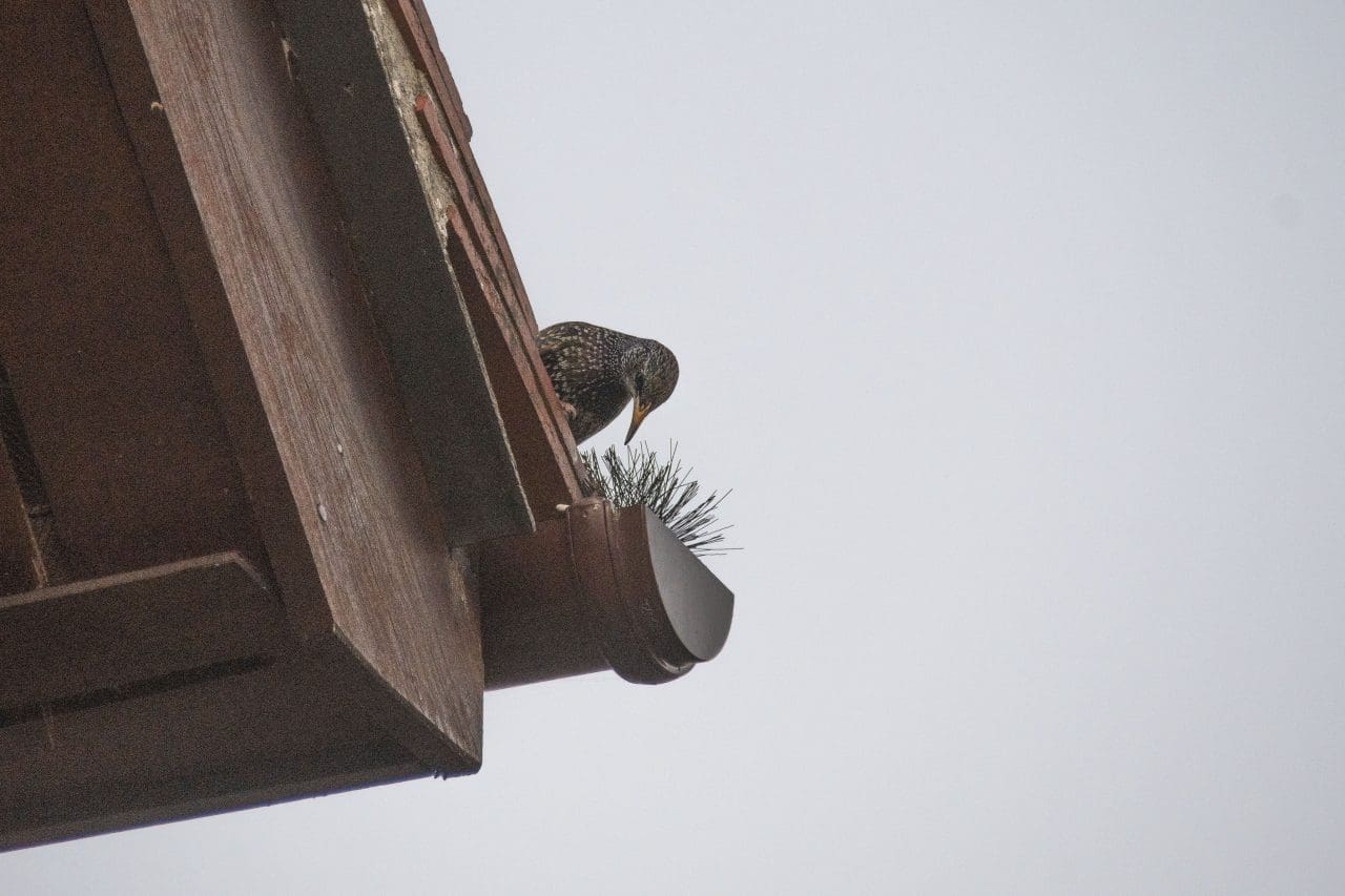Early morning and Robins are singing (image 1) along with Blackbirds and Great Tits and a host of small birds marking the start of the dawn chorus. Buzzards and Red Kites are calling as they fly overhead trying to avoid being mobbed by Crows. A few days ago I watched two Red Kites from the garden performing their spectacular areal twisting and diving display. We have three Blue Tits fighting over one of our nest boxes and, just as it is almost too dark to see, tiny Wrens are flying up to communally roost in another of our nest boxes. Starlings are also inspecting nest sites and particularly the hole leading into the eaves of our house (image 2) where they stomp about in hefty boots over our bedroom ceiling. Greenfinches, Goldfinches and Chaffinches as well as Blue Tits and Great Tits are using our bird feeder and feasting on sunflower hearts while Pheasants, Wood Pigeons and Collared Doves take food off the bird table and, a Wren flits about around the pond.