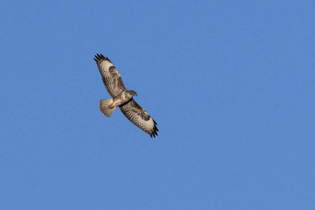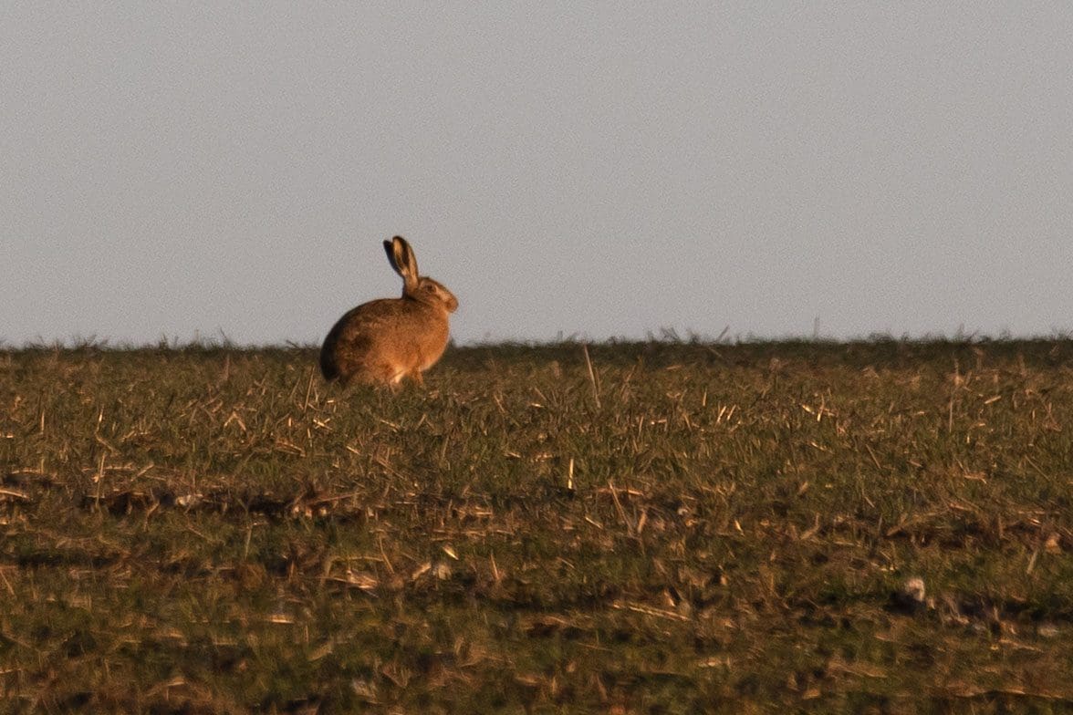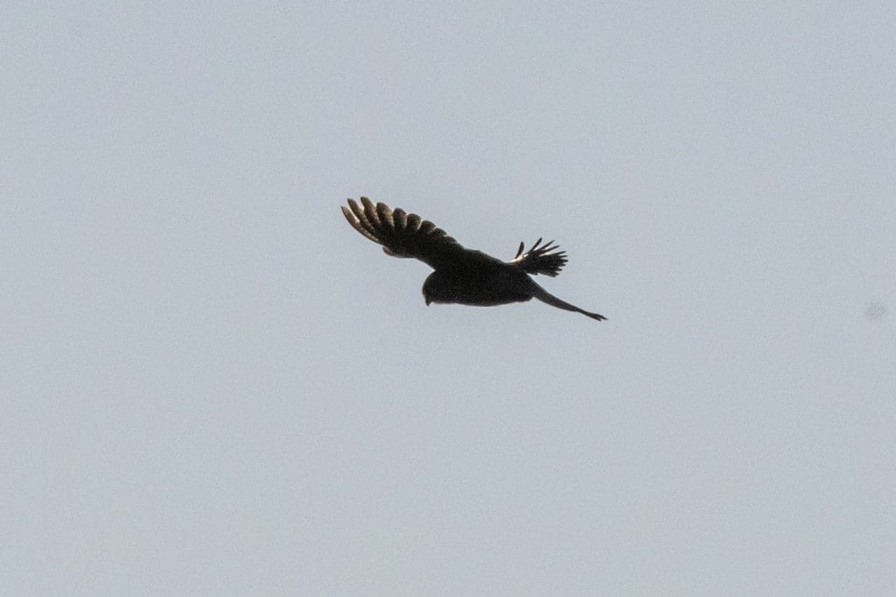 I took a slow drive along our local lanes between Stroud and East Meon to see what was about. A mixed herd of eight Roe deer with both does and bucks were wandering in line across a field (image 7). While Roe Deer are a native species it seems that our present animals may have arisen from introductions as the native animals were long ago culled almost to extinction. Many of the arable fields held Brown Hares (image 8), always a bit distant for a good photograph, and hopefully (as we approach the end of the month) they will soon start their boxing matches. Two Kestrels were hovering and hunting side by side diving down together on potential prey (unless it was perhaps a territorial display), something I have never seen before but they separated as I got near (image 9). Up on the high chalky lands, Buzzards (image 10) and Red Kites (image 11) were flying together and avoiding the inevitable mobbing by crows. Buzzards have broad fan-like tails and Red Kites have long forked tails and bright white patches on their underwings and of course, their reddish bodies. I was surprised to see a Buzzard dive down onto prey only to be attacked and seen off by a more aggressive Red Kite.