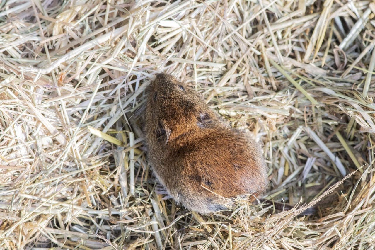 Reddish-brown bank voles often shelter and have their babies under our tins and this one was particularly brightly coloured (image 15).