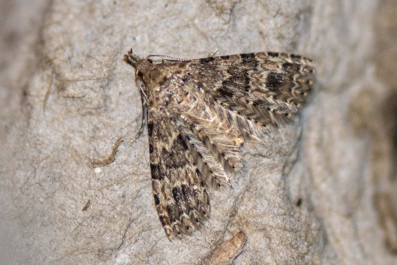 28 April found our first scorched carpet moth (image 13) attracted to the moth trap ultraviolet lamp, a really attractive moth with its bands of black, white, and burnt brown colours.